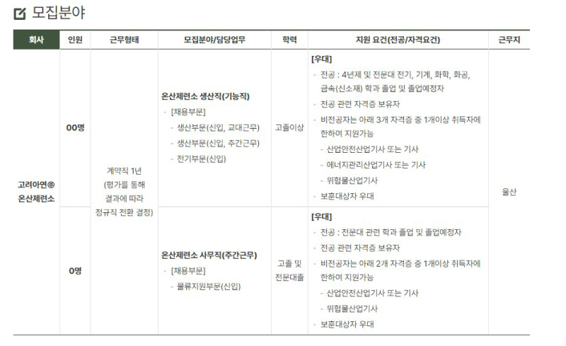 고려아연 생산직 (생산) 채용 공고 분석