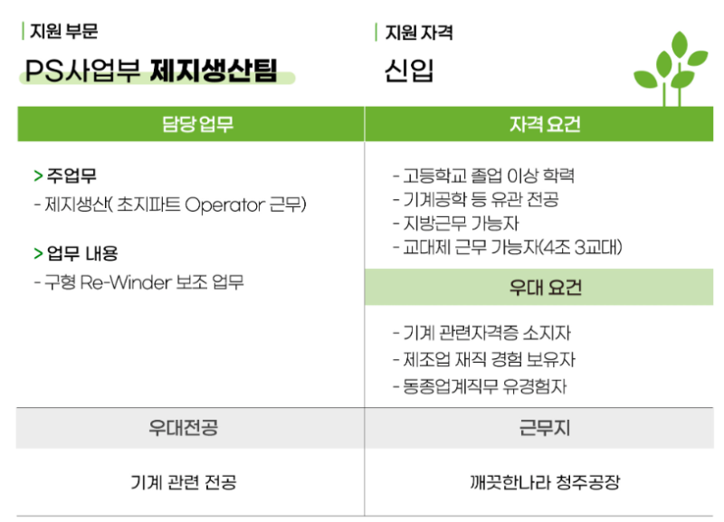 깨끗한나라 자소서 첨삭: 생산직 합격후기