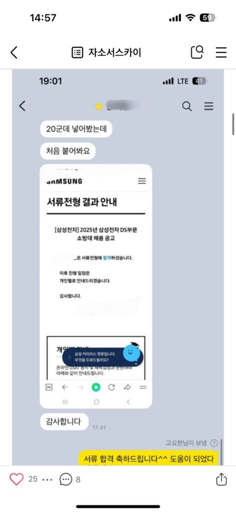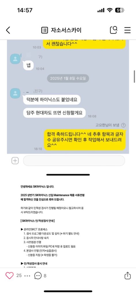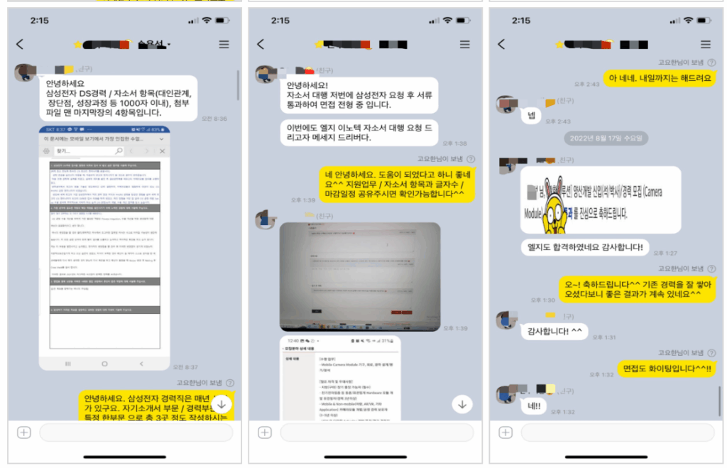 수백명 이상 합격 사례 보유 – 대기업/공기업/공무원 및 병의원 / 자소서, 경력기술서, 직무수행계획서 첨삭대필 작업드리고 있습니다.  (현대자동차, 기아자동차, 삼성전자, SK하이닉스, 포스코, 현대로템, 중공업, 건강보험공단, 한국전력, 한국도로공사, 각종 병원, 공무원 등 매년 합격 보유)