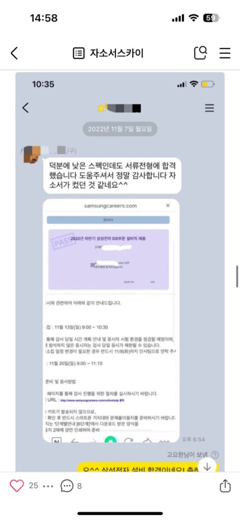 모트라스 자소서 첨삭, 생산직 합격후기!