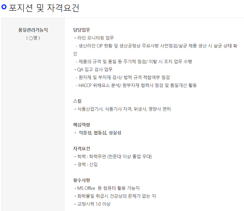채용 공고 분석 (생산직 – 공무, 품질)