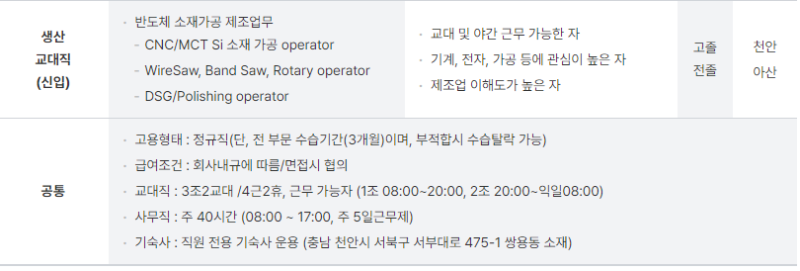 하나머티리얼즈 생산직 채용 공고를 살펴보겠습니다. 주요 업무는 다음과 같습니다.