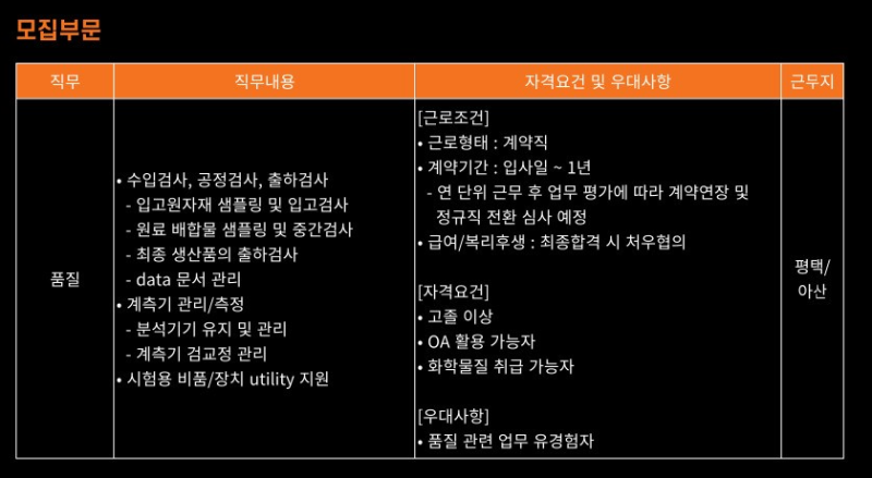 채용 공고 분석: 생산직(품질) 주요 업무