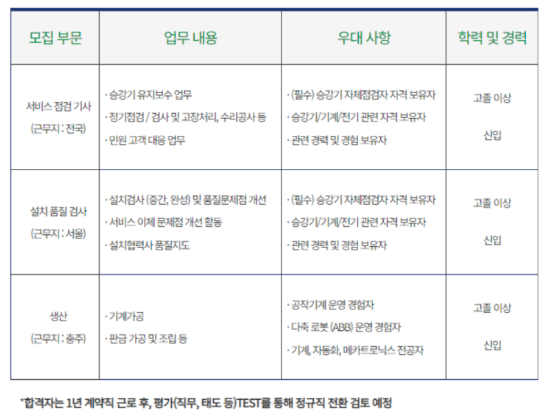 현대엘리베이터 생산기술직 채용공고 분석