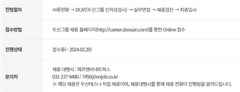 두산테스나 자소서 합격후기 및 채용공고 분석