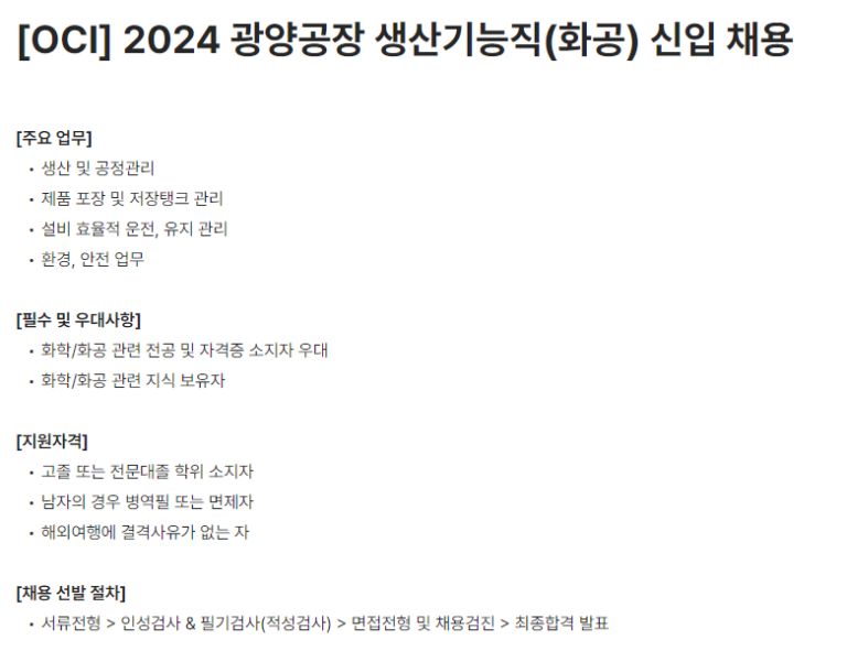 OCI 자소서, 광양 생산직 합격 첨삭후기
