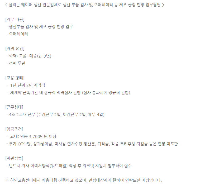 MEMC코리아 자소서 합격후기, 생산직 채용공고 분석