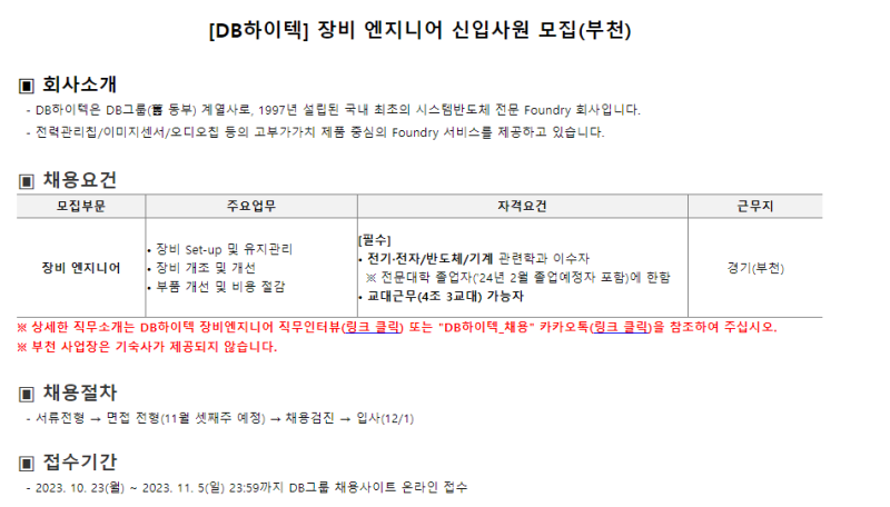 – 지원 동기가 추상적이고, DB하이텍과 장비 엔지니어 직무에 대한 연결 고리가 부족했습니다.
